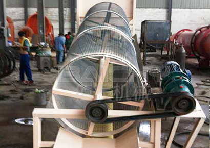 滾筒篩選機是由六角形滾筒、機架、漏斗、減速器、電動機五個部分成。破碎的石料進入滾筒后,一方面隨著滾筒轉動而被篩選,一方面粒度大的石料沿著GTS型滾筒篩滾筒的斜度向前流動,通過不同網目的的篩網逐漸被篩出。不大的石料篩出后落入各自的漏斗,然后由人工運出或自流送往成品堆。