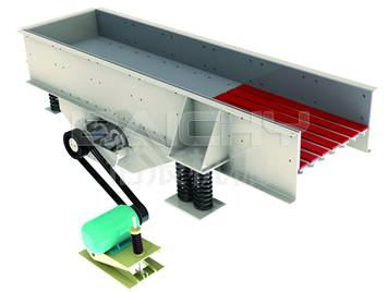 - ZSW系列振動給料機是以偏心軸為激振源,齒輪傳動,噪聲低,工作平穩,壽命長,同時可預先篩分細料,使破碎機效率更高。調節間隙柵條設計,防止物料堵塞,客戶可選裝調速電機,便于控制給料量,無需電機的頻繁啟動。